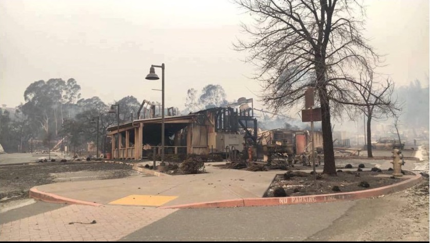 The patio at Paradise Ridge Winery after the Tubbs Fire burned through north Santa Rosa. (Photo via Facebook)