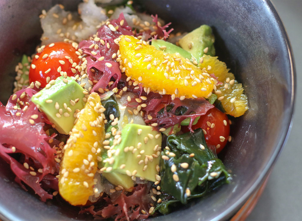 Kosho Best Bet: Seaweed Salad ($11): Rather than the usual slippery green seaweed in most salads, Rand mixes red, green and white seaweeds together, giving a variety of bumpy, lumpy and tickly textures. Marinated in orange yuzu vinaigrette, avocado and fresh cherry tomatoes add a California touch. (Photo by Heather Irwin)