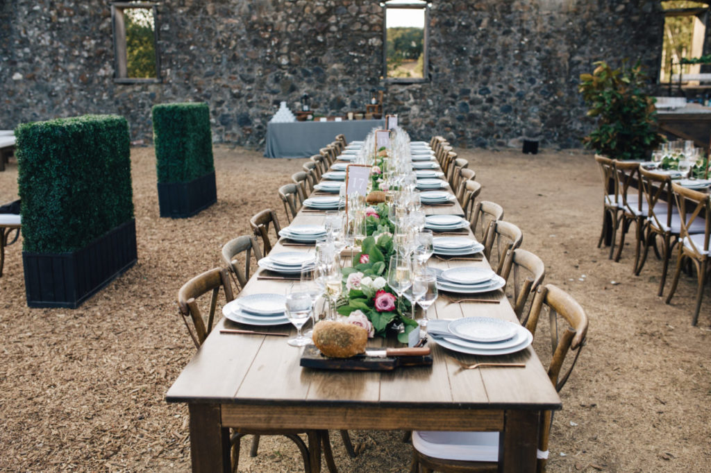 Table setting in the Winery Ruins of Jack London State Park. (Photo courtesy of Green Vintage Photography)