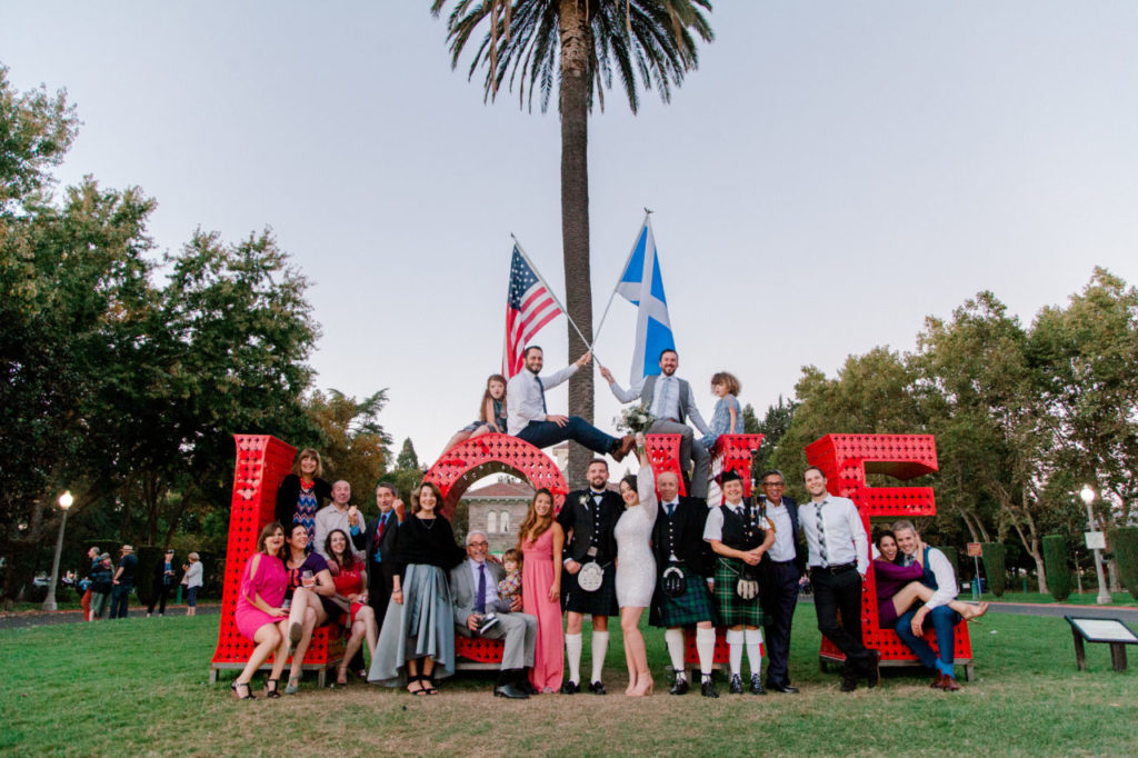The Maysonnave House’s proximity to the historic Sonoma Plaza, just a few dozen steps away, makes for a great photo op at the LOVE letters in front of city hall. This wedding party traveled in an impromptu parade to the sounds of bagpipe player, Elise MacGregor Ferrell. (Photo courtesy of Kathryn White Photography)