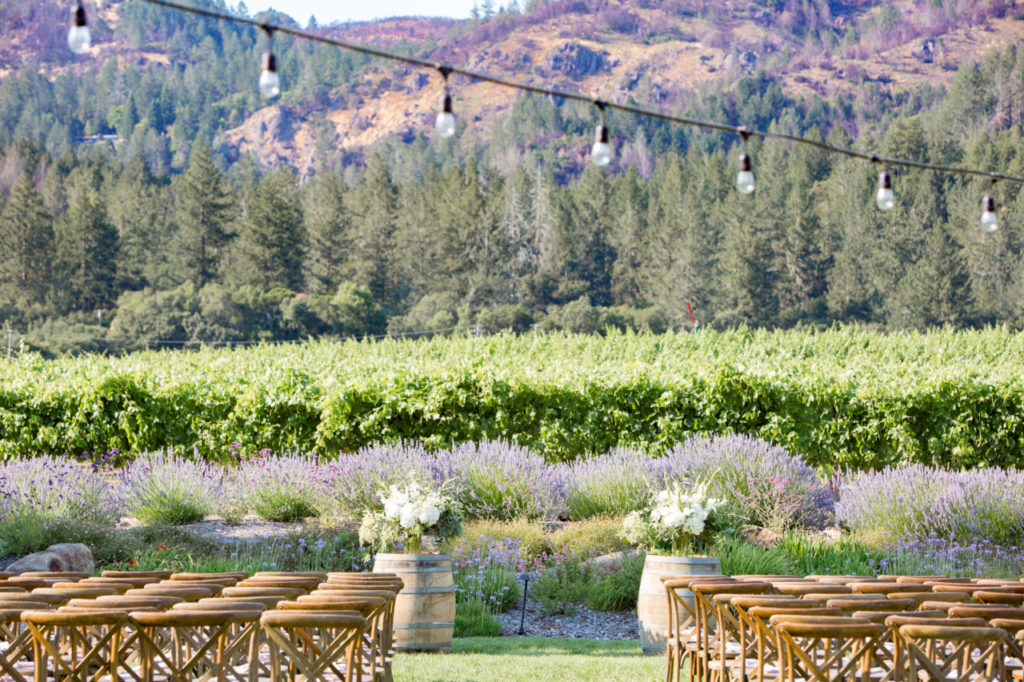 Scenic Alchemy at St. Francis Winery: St. Francis Winery sits in the center of the Sonoma Valley. A wedding ceremony here enjoys a view of layered natural beauty: lavender, vineyards, redwoods and the Mayacama mountains. St. Francis pours their sustainable, “fruit driven” wines which inspire the menu created by their in-house chef. 100 Pythian Rd., Santa Rosa, 888-675-9463, stfranciswinery.com. (Photo courtesy of Suzanne Karp Photography)