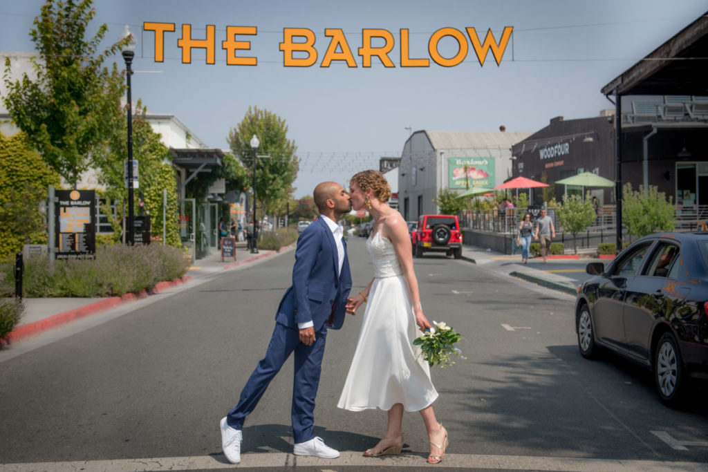 Refreshing Modernity at The Barlow: This historic former apple cannery made a stunning transformation into an artisan food and shopping destination, with many vendors crafting their wares onsite. For inspired modern wedding design, this is the place. The shopping area transforms once again into a sweet wedding venue which benefits from 20-foot ceilings and pleasing industrial-chic details like metal corrugated siding and roll-up doors. With an outdoor space equipped with the perfect tree to wed by, the stage is set for an unfussy, modern event. 6750 McKinley St., Sebastopol, 707-824-5600, thebarlow.net. (Photo courtesy of Tia & Claire Studio)