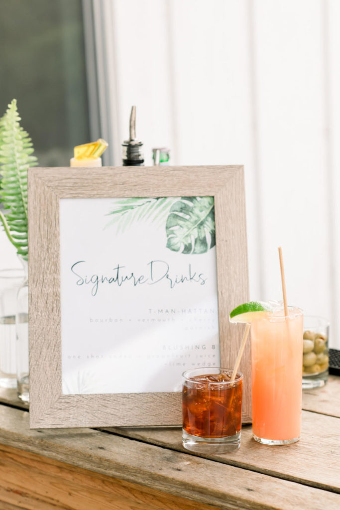 Two is Better Than One: A signature drink is nice, but how about two? One to please the palate of each spouse and their tribe. At this wedding a T-Man-hattan and a Blushing B were served. (Photo courtesy of Caitlyn O'Reilly Photography)