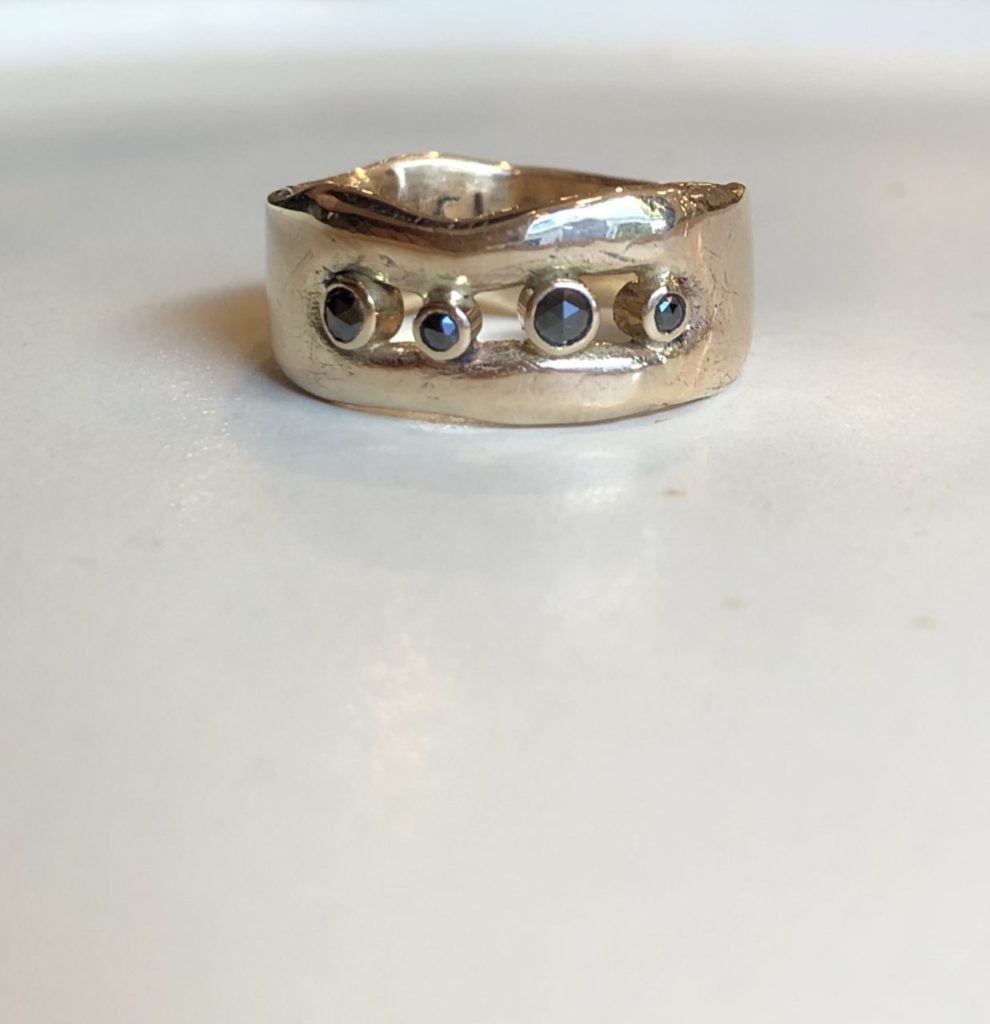 Variation on a Classic: Don't be afraid to wear a take on tradition. Gold, black diamonds, and an irregular edge make for a stunning wedding band. This, and other customizable options, are available from Petaluma designer Siri Hansdotter. $1500-$3000 (email siri@sirihansdotter for a custom quote), In The Making, 122 American Alley, Petaluma, 707-787-7210, inthemakingpetaluma.com