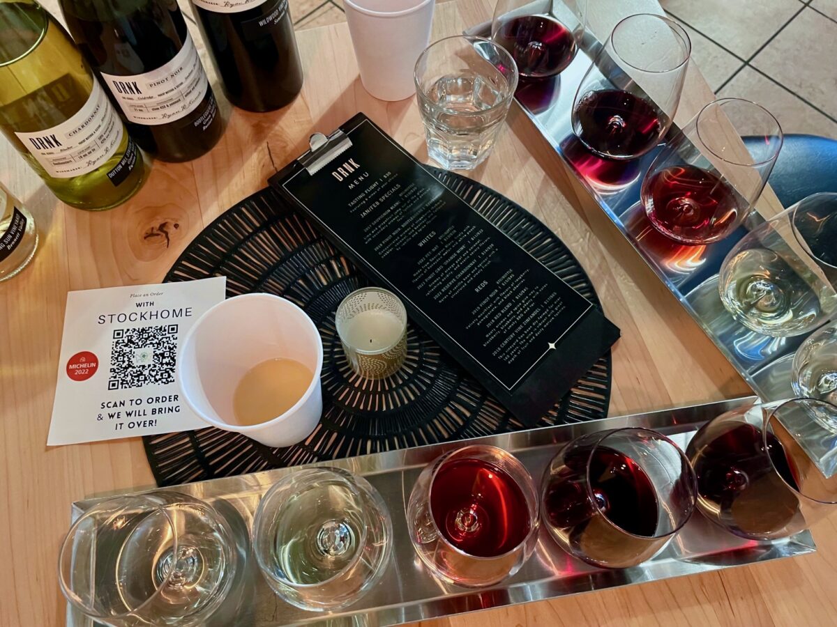 Flights at DRNK’s Petaluma pop-up, priced at $30 for a choice of six selections, currently include two Pinot Noir wines, a Sauvignon Blanc, a red blend and an old-vine Zinfandel. For a fun twist, the winery also offers a lively Sauvignon Blanc Pet-Nat and a fresh Pinot Gris Orange Wine. Wines are also available by the half-flight, glass, and bottle.