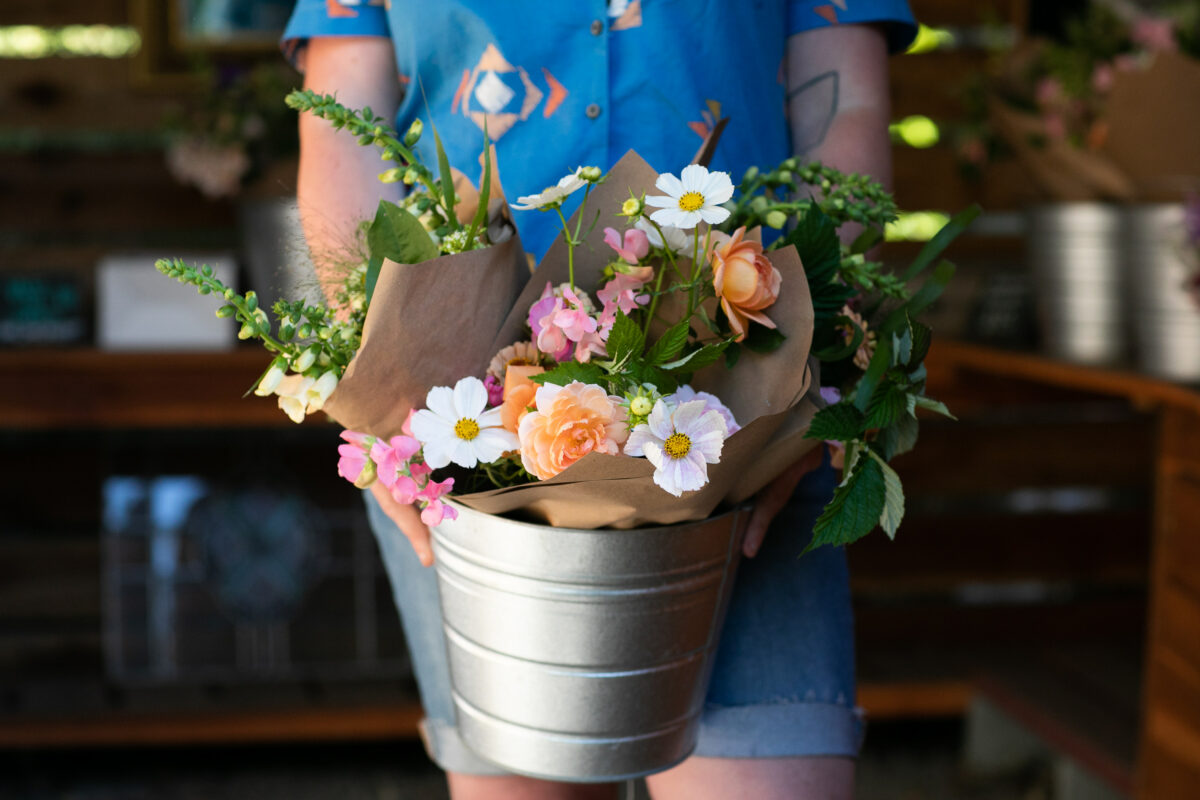 A vegetable and flower farm in Sonoma focused on healthy soils and organic growing practices. They sell flowers at the Petaluma Eastside farmers market on Tuesdays, deliver weekly bouquets, and will sell large flower buckets for DIY arrangements. 707-210-9720, sunrayfarm.com