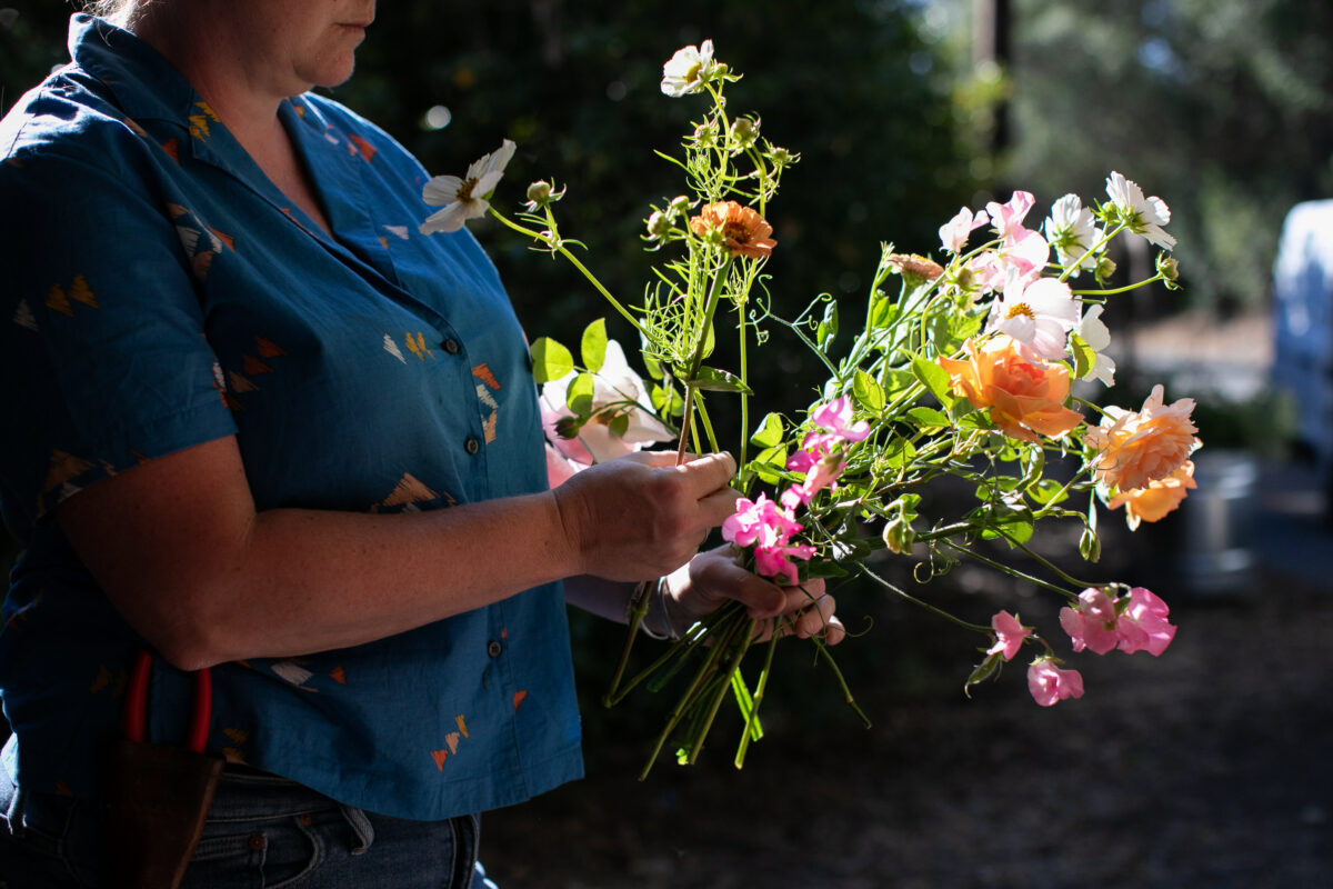Larkin, who grows an acre of garden roses and other blooms at B-Side Farm in Petaluma, is just one of a group of farmer-florists changing the face of the local specialty cut-flower industry, an industry worth $4 million in 2020. Sonoma’s growers are leaders in advocating for the use of sustainably grown, local flowers—the so-called “farm-to-vase” movement.