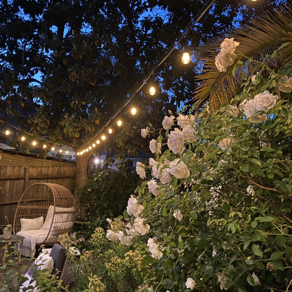 Frame spaces with lighting: Using lights to outline a space creates a sense of definition, coziness and beauty. Robindira Unsworth frames the seating area with lights in her Petaluma backyard. (Robindira Unsworth)