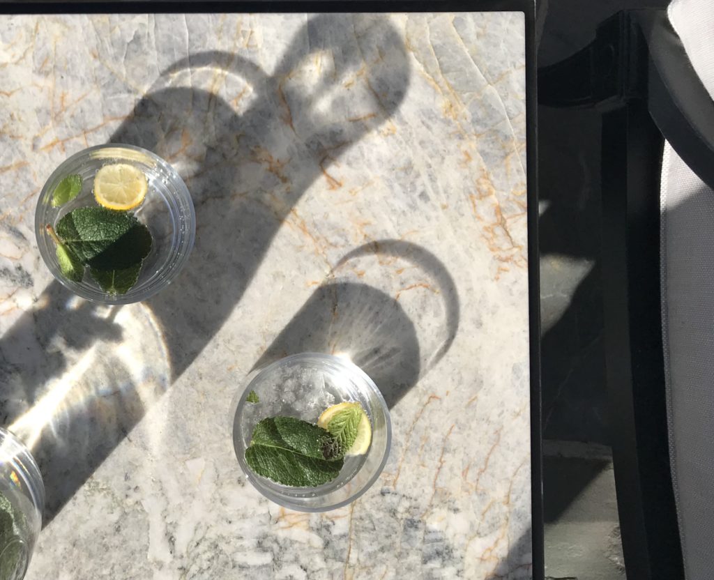 Replace glass tabletops: Stephanie Meyer also recommends replacing glass tops on on outdoor tables with a custom-cut slab of marble. This renewed piece offers pretty and natural style, increased durability—especially around little ones—and doesn’t need those constant cleanings to look good. (Karen Kizer)