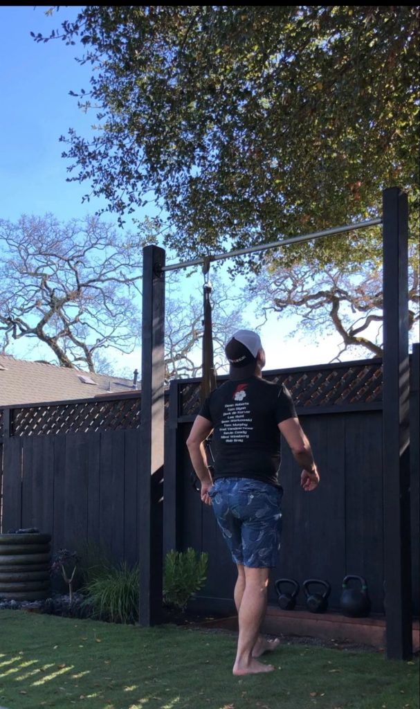 Add workout elements: A pull-up bar was installed as part of Coady’s workout space. There’s room for a neat row of kettlebells. (Shop Local Healdsburg)