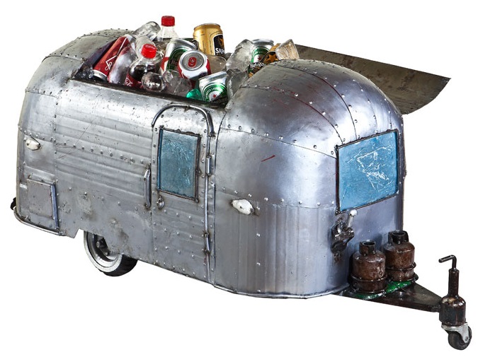 Keep your drinks cold and display a stunning art piece with this Airstream cooler. Made of recycled metal, this diminutive camper replica has all the visual details of the real thing. Embrace Airstream-mania without the parking challenges.