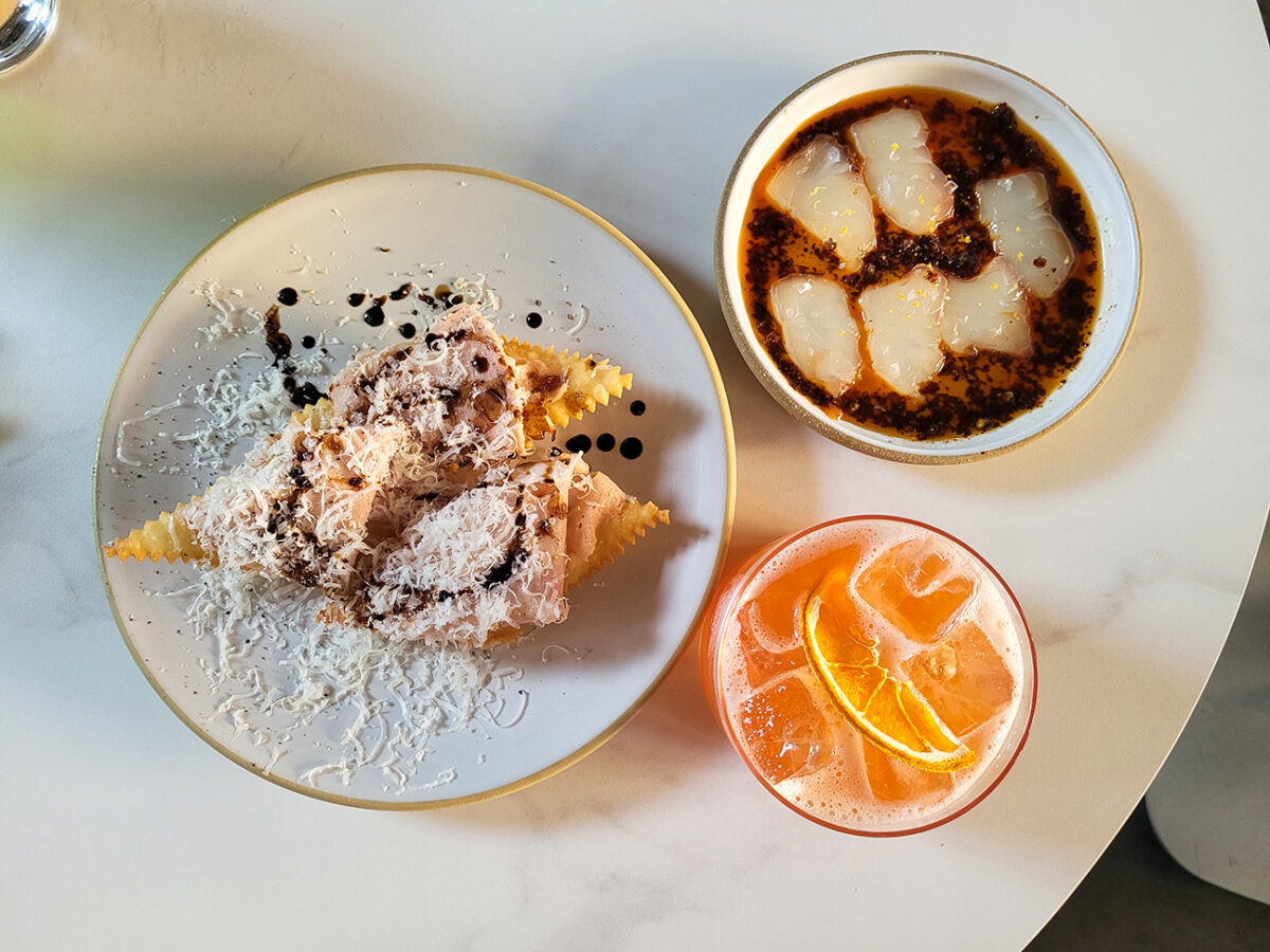 As for drinks, there’s a wide range, from refreshing low- or no-ABV cocktails (plus higher-octane sippers) to beer and wines on a well-researched list of Italian and Sonoma County bottles.