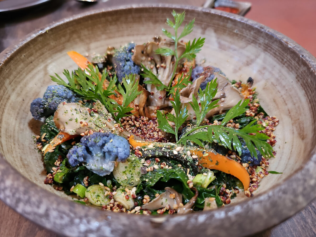Ohitashi, Ramen Gaijin: This seasonal spinach salad incorporated local mushrooms and purple cauliflower along with puffed quinoa and carrots. 6948 Sebastopol Ave., Sebastopol, ramengaijin.com.