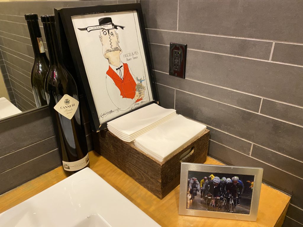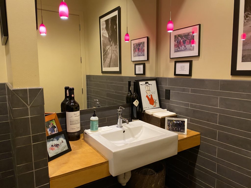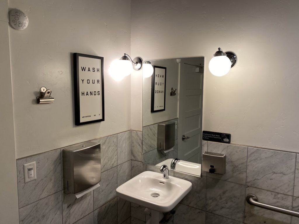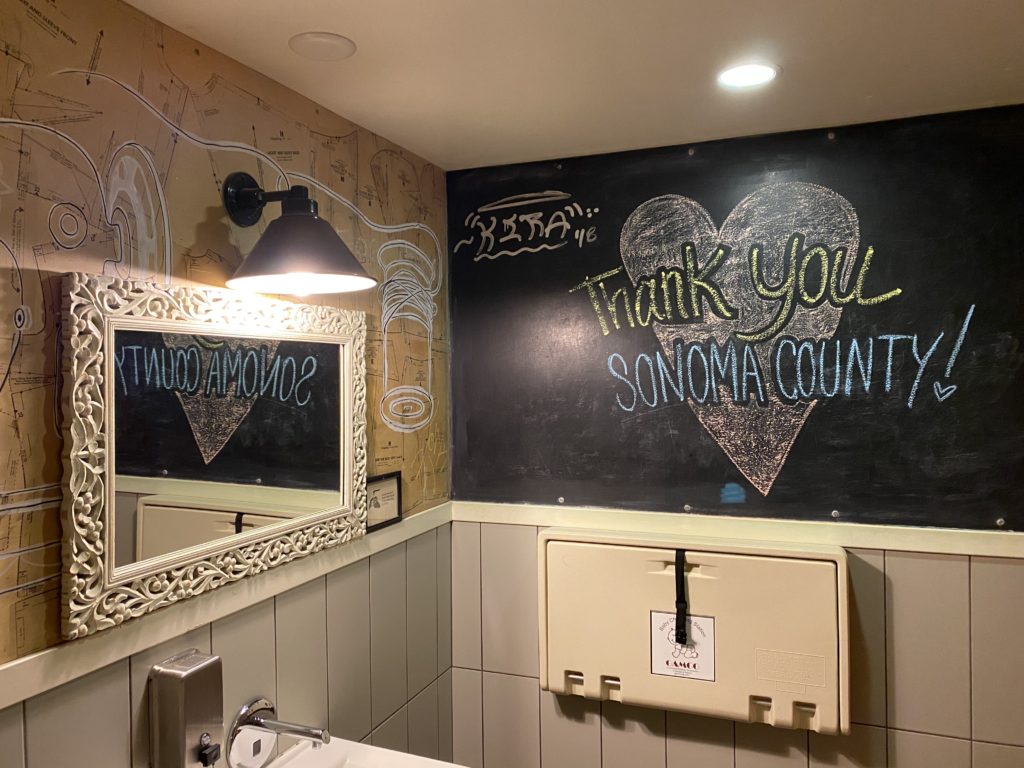 Bird and the Bottle, Santa Rosa: How can a bathroom always be clean, tidy and welcoming? Instead of stalls, roomy single-person restrooms are cheery and light with a helpful reminder to wash your hands. I always emerge refreshed and ready to face another glass of rose head-on. (Kasey Williams)