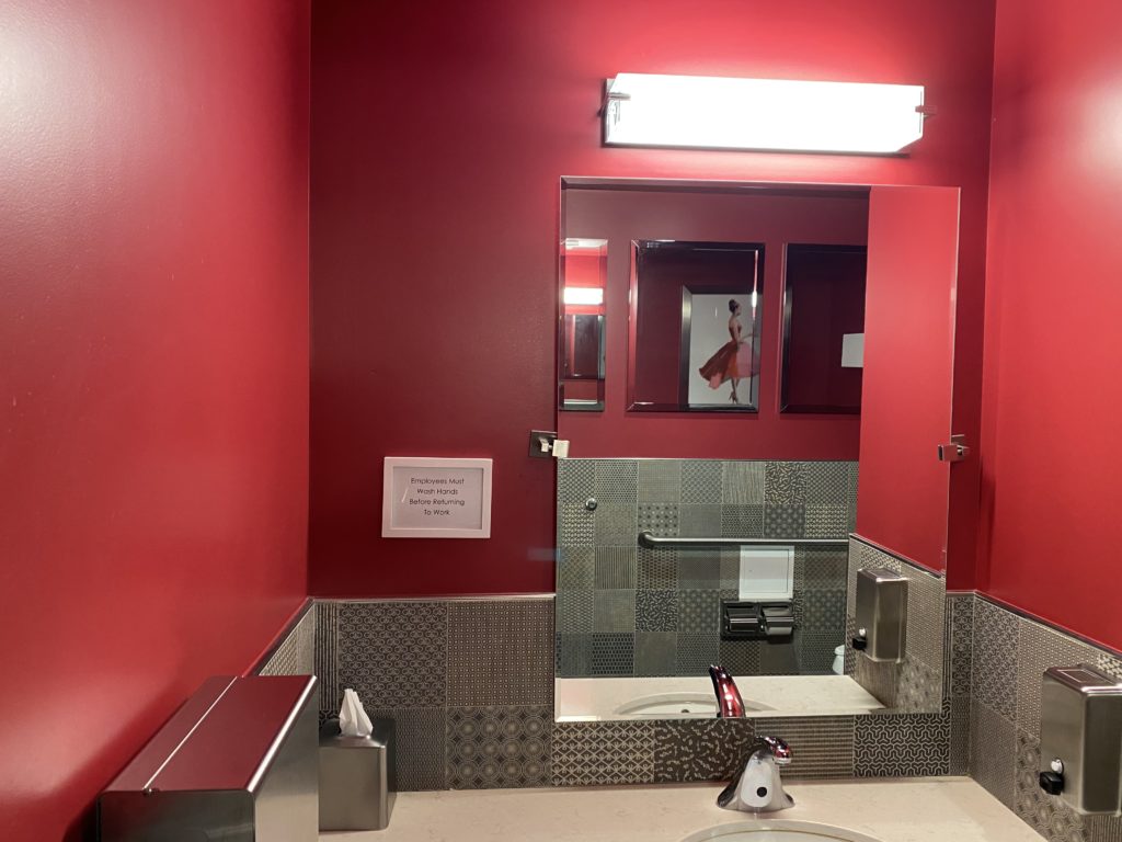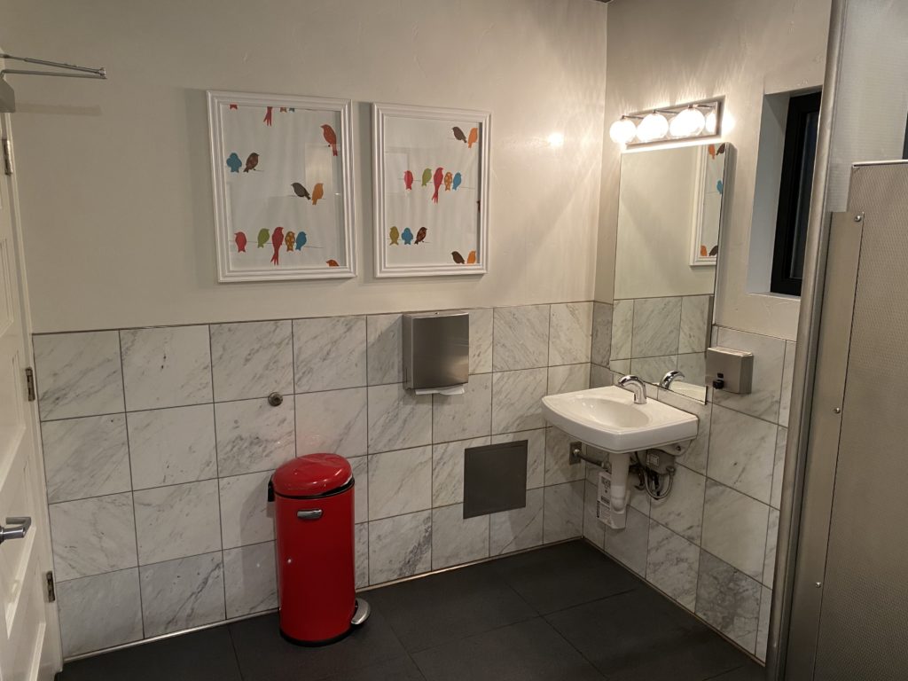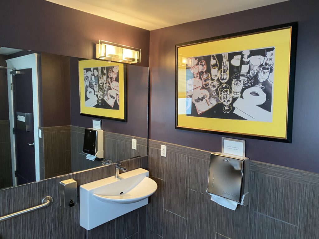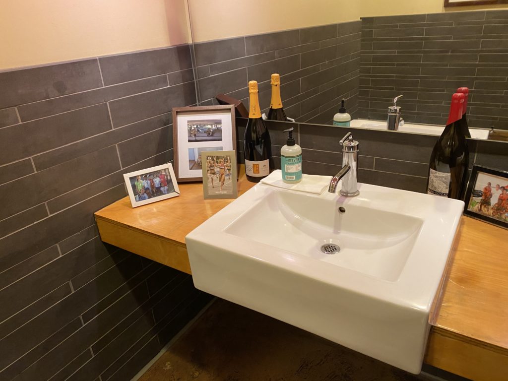 Bird and the Bottle, Santa Rosa: How can a bathroom always be clean, tidy and welcoming? Instead of stalls, roomy single-person restrooms are cheery and light with a helpful reminder to wash your hands. I always emerge refreshed and ready to face another glass of rose head-on. (Kasey Williams)