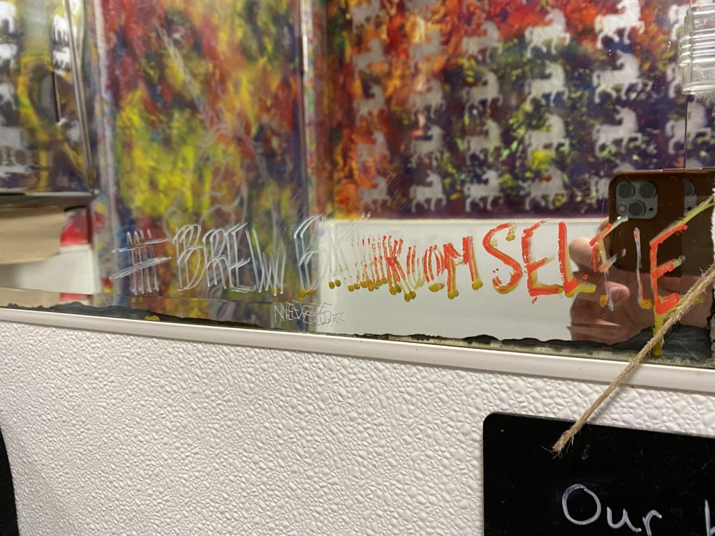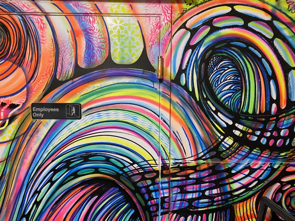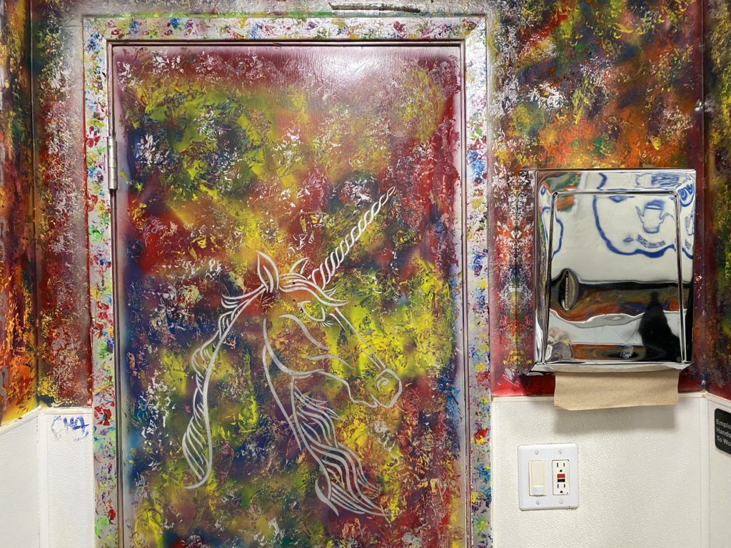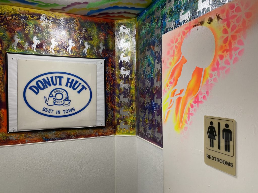 Donuts, jellyfish and unicorns: there's enough distraction in Brew's bathroom to make you forget about life outside the door. (Kasey Williams)