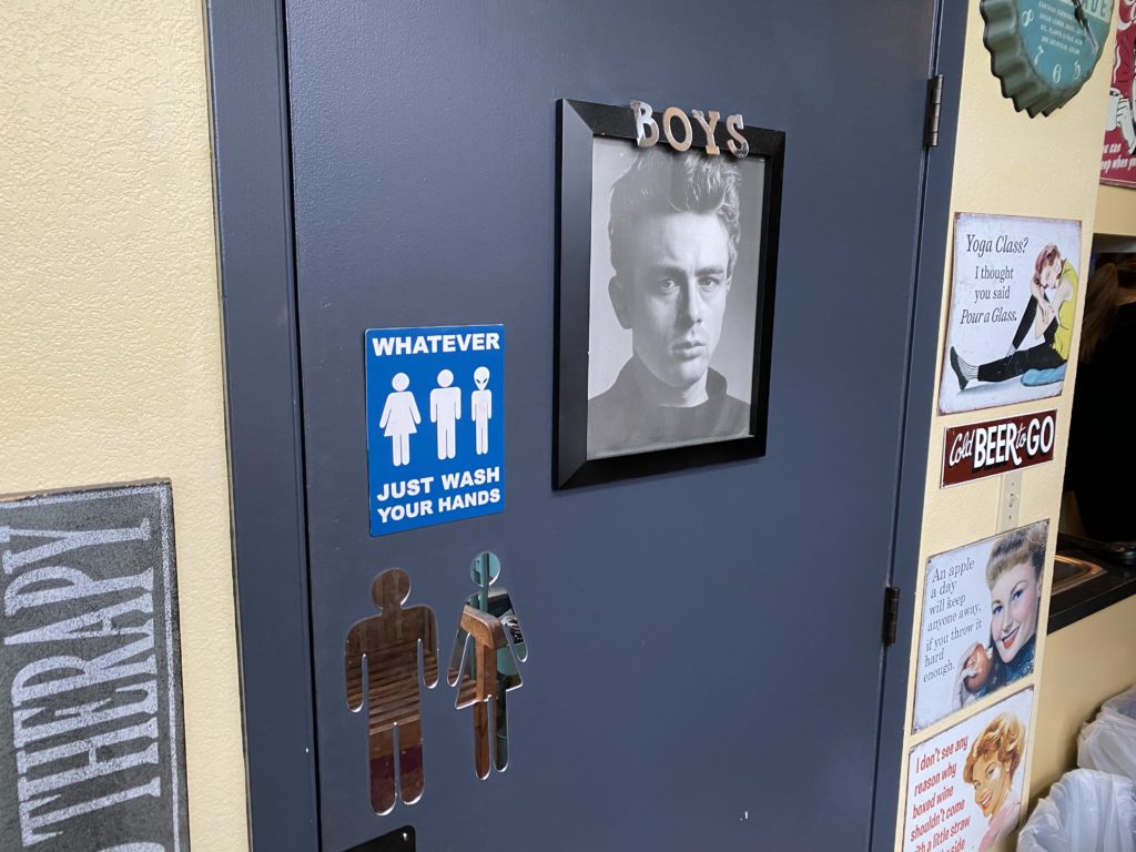 ..and James Dean graces the door to the male/unisex bathroom. (Kasey Williams)