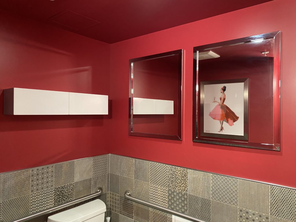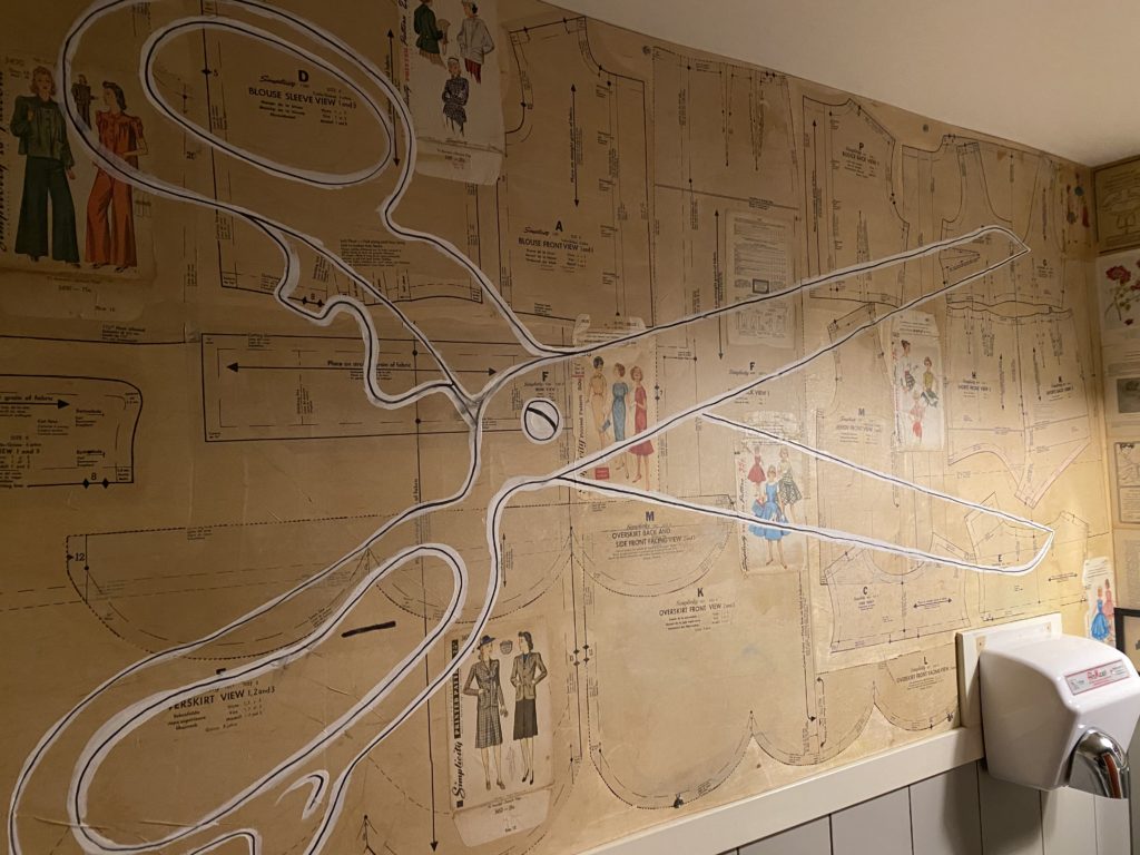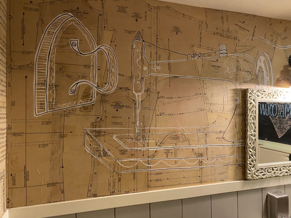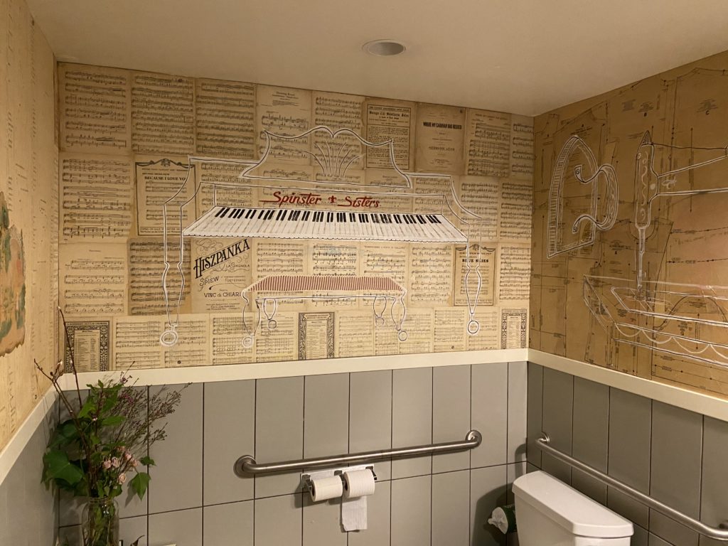 The Spinster Sisters, Santa Rosa: Part restaurant, part gallery space, this SOFA spot extends the art experience right into the restroom. Retro dress patterns and sheets of music paper the walls overlaid with modern line drawings and a chalkboard for leaving your own art. The bathrooms at The Spinster Sisters were designed by local artist Sheryl Chapman.