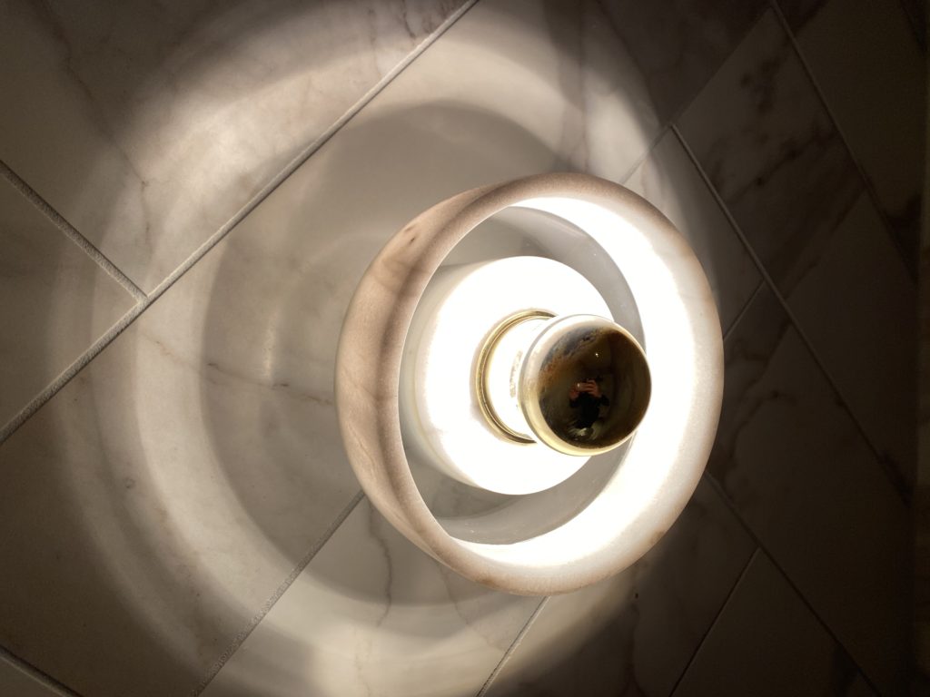Bad lighting can ruin your restroom experience: too bright and you're traumatized from discovering previously unseen wrinkles, too dim and you can't find whatever it is you're digging for in your overstuffed purse. Sweet T's ultramodern light fixtures emit just the right amount of light. (Kasey Williams)