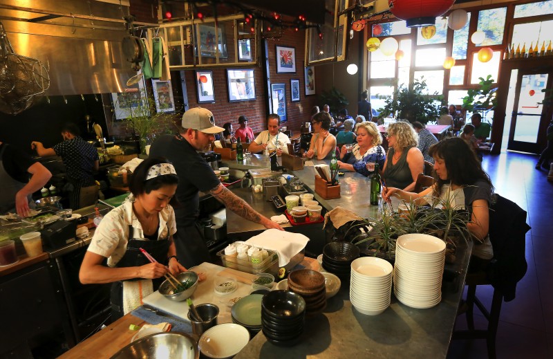 Several days later, all of the animals are broken down into smaller pieces at a butchering demonstration at Santa Rosa’s Great Handcar Regatta September 25. A crowd gathers to watch as chefs wield huge knives, dissecting the animals into more familiar dinner-sized pieces. Here is a loin, ribs, a leg for ham. Faces range from enraptured to disgusted. That is exactly the point. Our audience is getting personal with their food as well.