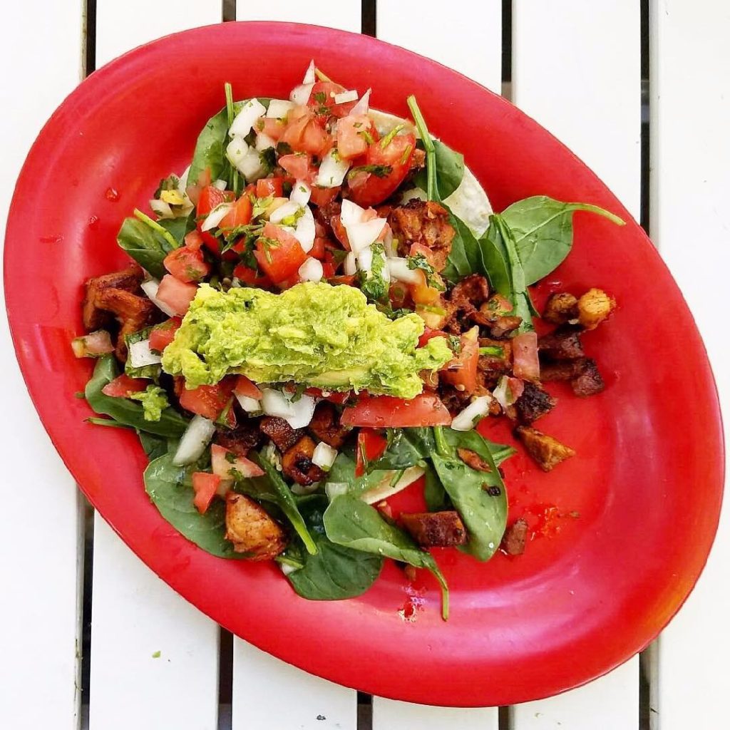 Amy's Drive Thru in Rohnert Park makes the list because of its colorful aesthetic, including the branding on the sunshine-yellow trays. Their mac and cheese with fresh tomatoes and green onions is one of the prettiest fast-food eats we've seen. Image by @aveganandher.