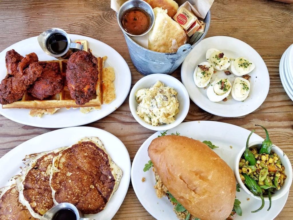 The Fremont Diner in Sonoma is packed with the picture-perfect: vintage decor, rusted retro memorabilia, teal picnic tables outside and comfort classics. A shot of chicken and waffles is guaranteed to be an instant hit with your followers, and so is the "Greetings from Sonoma" mural outside. Image by @genevieveyow.