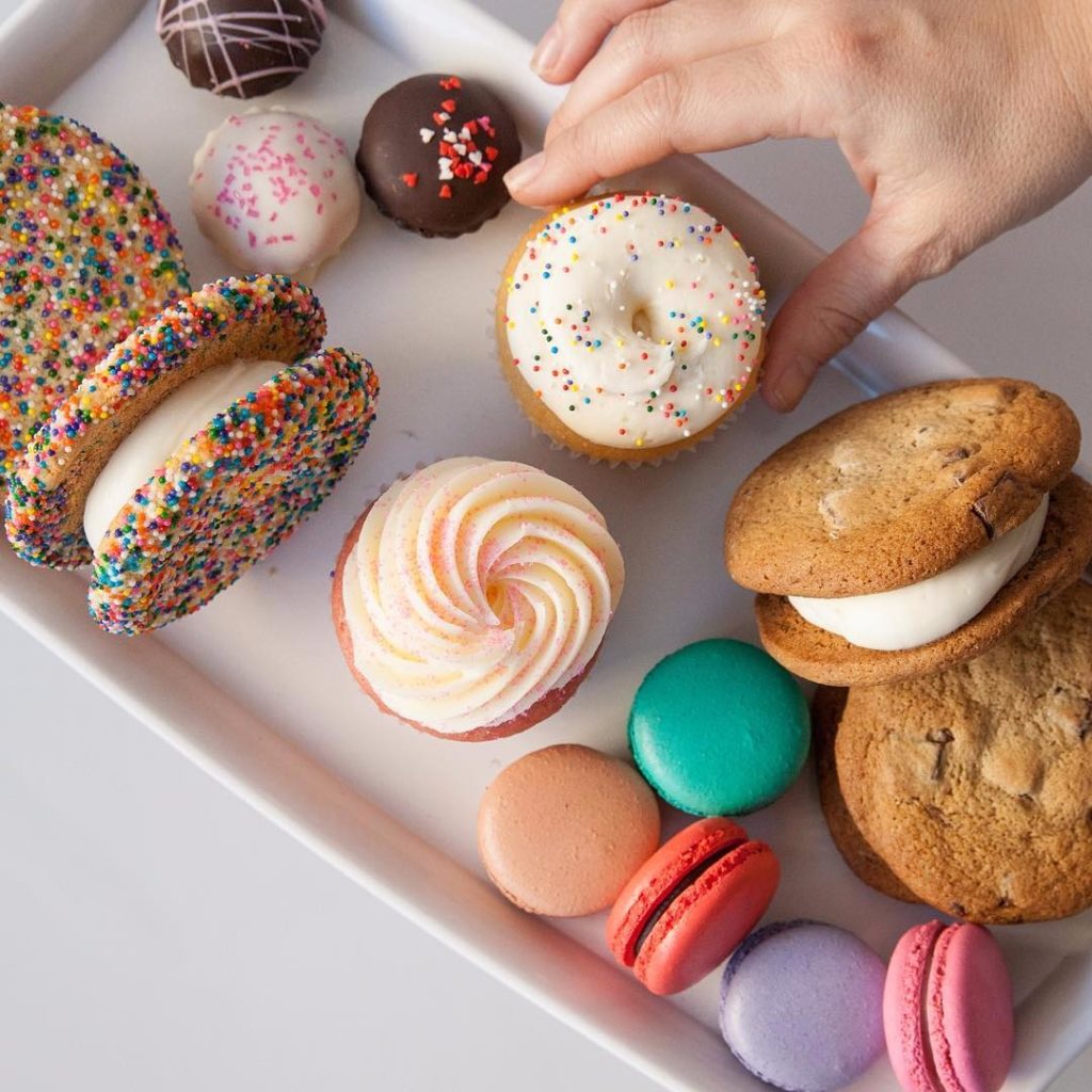 For sweet treats and shots, Instagram-favorite cupcake shop Sift Dessert Bar makes pretty pink pastries and other colorful treats. Newcomer Bump City Bakery in Petaluma specializes in gluten-free and vegan sweets, some of them spiked with booze. Image by @ubereats.