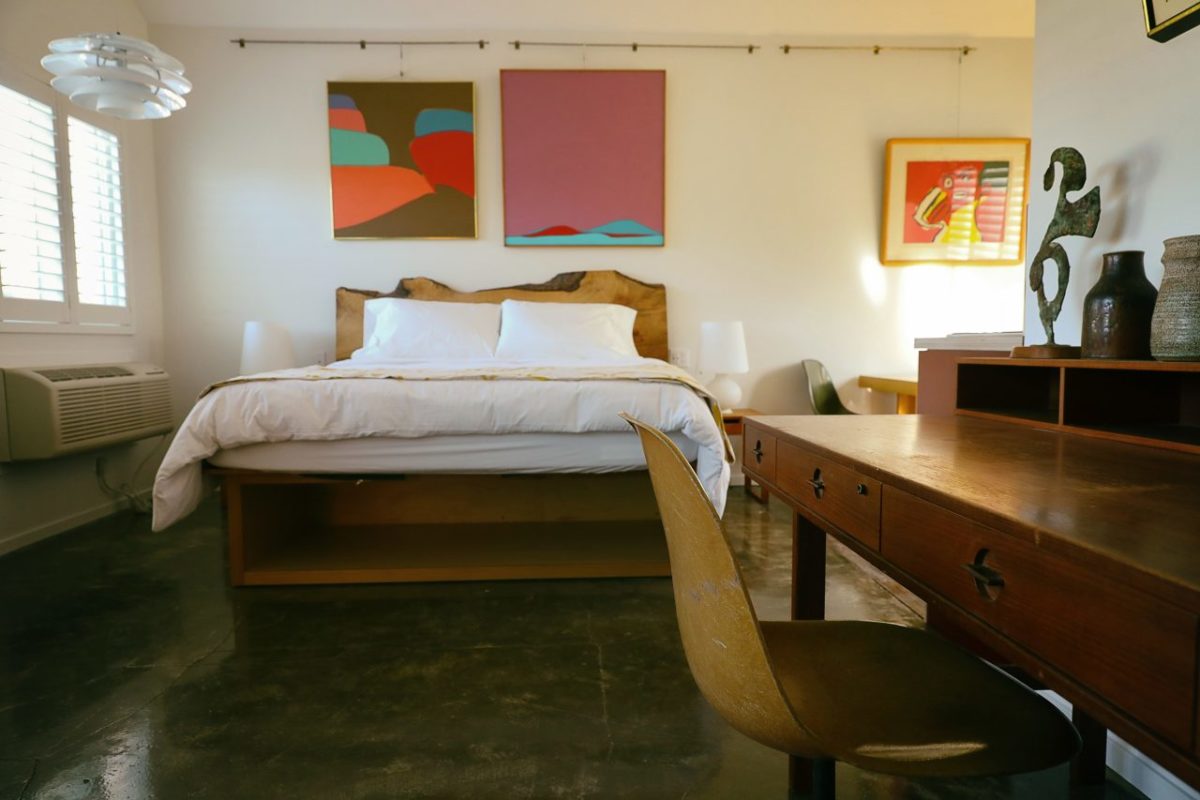 A Herman Miller Eames desk is featured in a room of the Astro Motel, in Santa Rosa. (Photo by Christopher Chung)