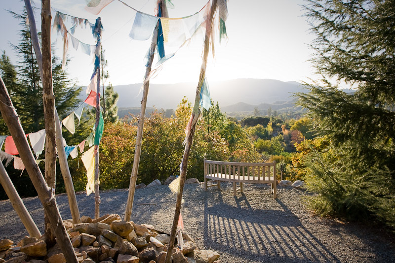 Amidst the Asian plants and trees, you will find a giant lily pond, waterfalls, footbridges, and a structure of Tibetan prayer flags perched high on a hill overlooking the Sonoma Valley. There are plenty of benches throughout the property, many at optimal spots for resting and taking in the beauty. There’s a rose garden, too, and picnic tables flanked by the vineyards at the property’s entrance.