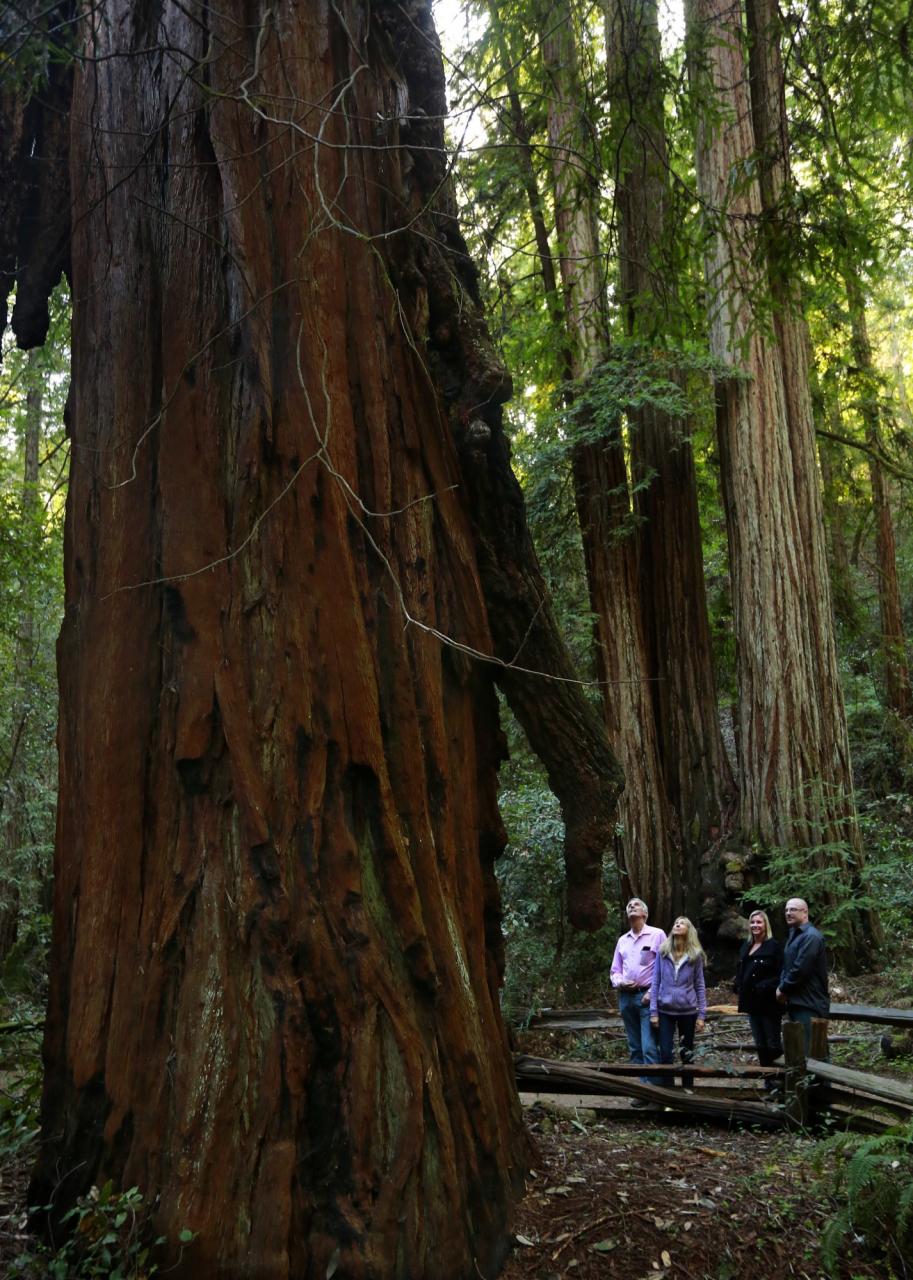 Armstrong’s namesake tree is the oldest in the grove, estimated at more than 1,400 years. With a diameter of more than 14 feet, it’s also the largest tree in mass within the reserve. Other redwoods towering nearby seem diminutive in comparison.