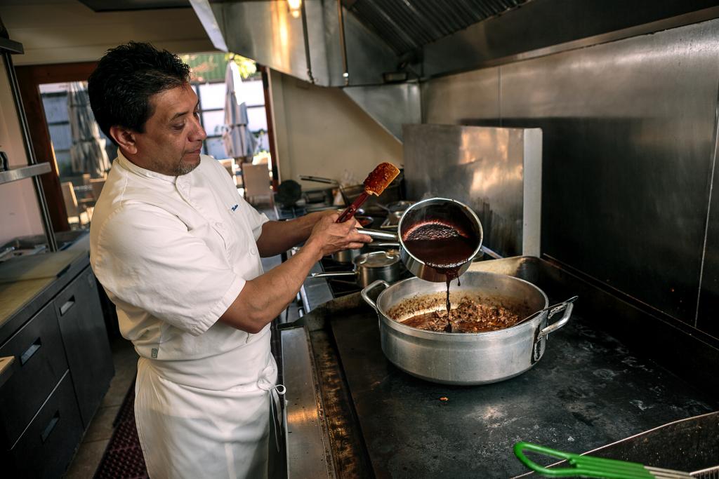 “It’s often served with roast rooster, which is better than chicken because it needs to be cooked longer, and that lets the mole thicken and get richer,” he said.