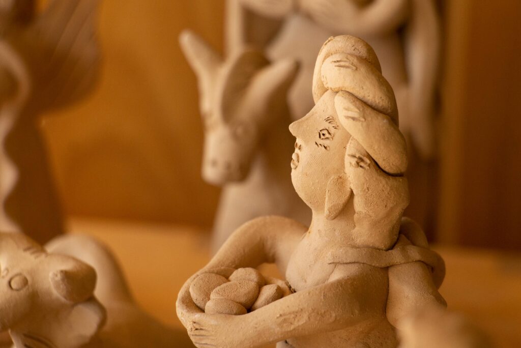 “Atzompa” Nativity: Hand-formed intricate details are visible down to the fingerprints on this clay nativity by Maria Gutierrez. $375 (16-piece set), Corrick's Stationery, Gallery & Gifts 637 4th St, Santa Rosa, 707-546-2424, corricks.com (Karen Kizer)