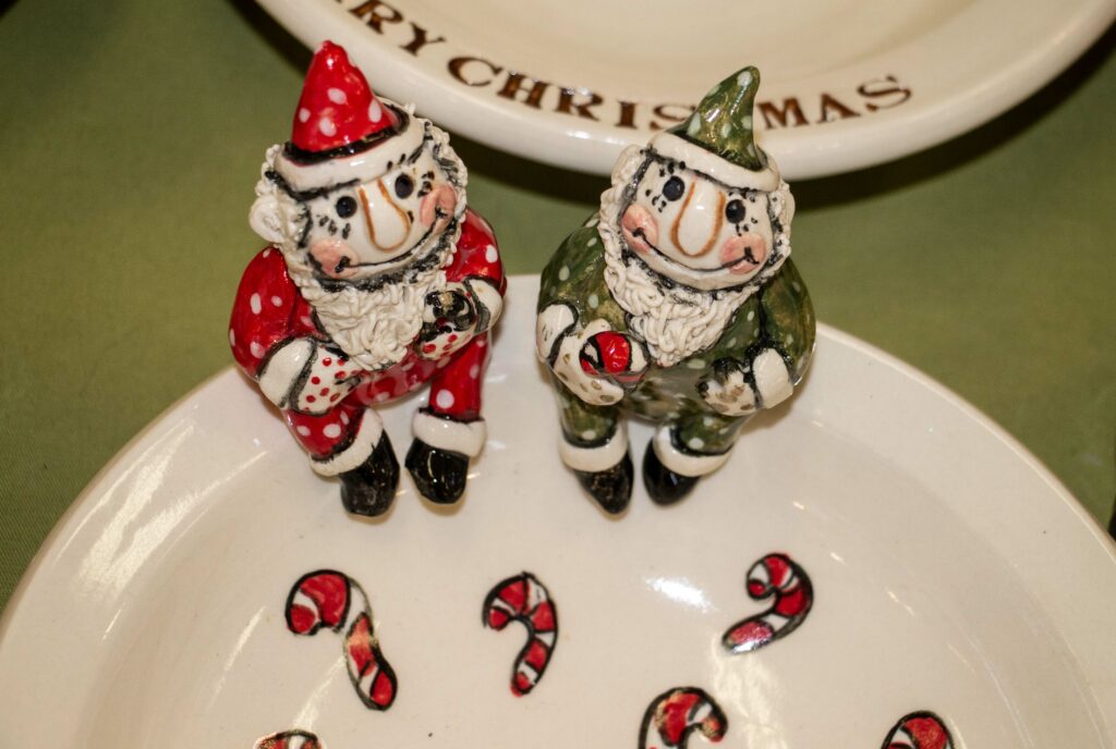 Sweet As Can Be: These two elves sit atop a playful candy cane bowl. $75 (bowl), Corrick's Stationery, Gallery & Gifts 637 4th St, Santa Rosa, 707-546-2424, corricks.com (Karen Kizer)