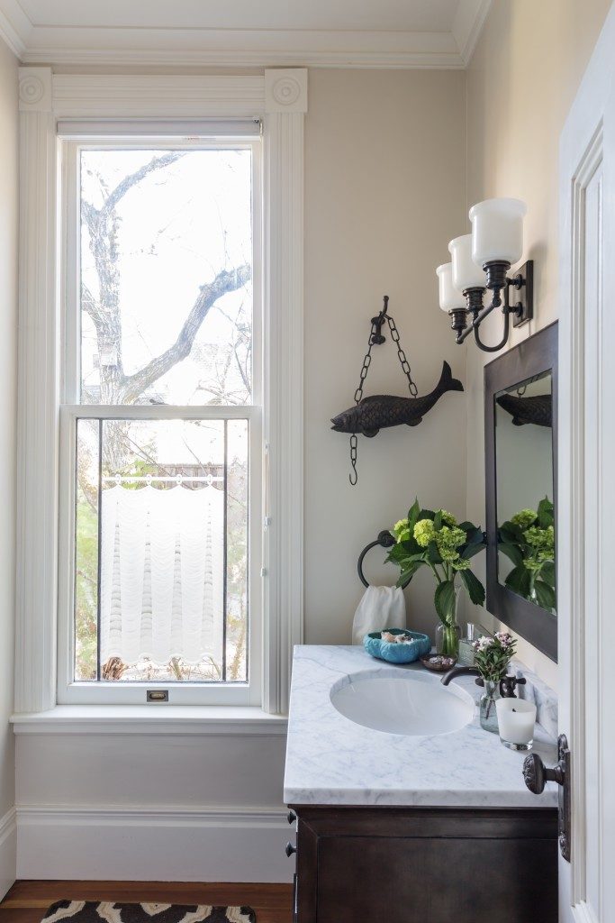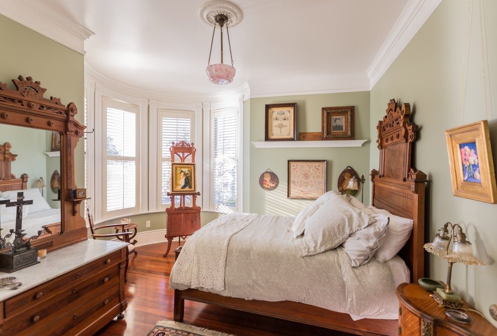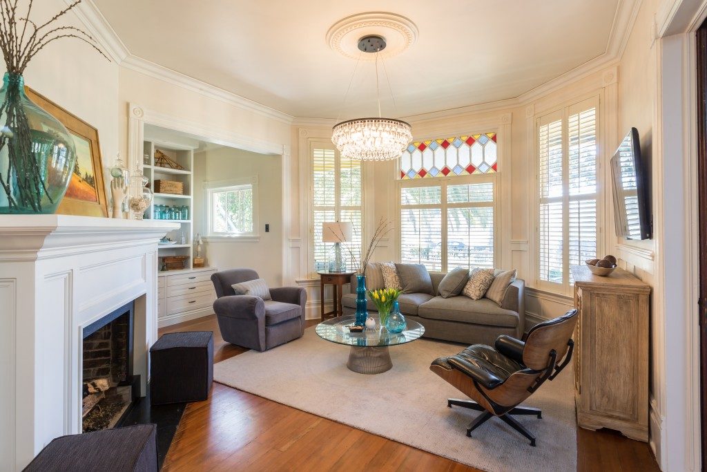 The Victorian housed a long list of inhabitants after the Swishers, and in later years the large house was divided into five apartments rented out as individual units. The owner prior to the Pembrokes began transitioning the structure back to a single residence, and the Pembrokes completed the job. The first floor has a living room, formal dining room, kitchen and bath. There are three bedrooms and two baths on the second floor and the former workspace on the top floor now stands empty. All the plumbing and wiring have been replaced, and all four fireplaces are now working and converted to gas, including one in the master bedroom that warms them all winter. While they’ve honored the original integrity of the home, their furnishings are modern and create a contemporary feel.